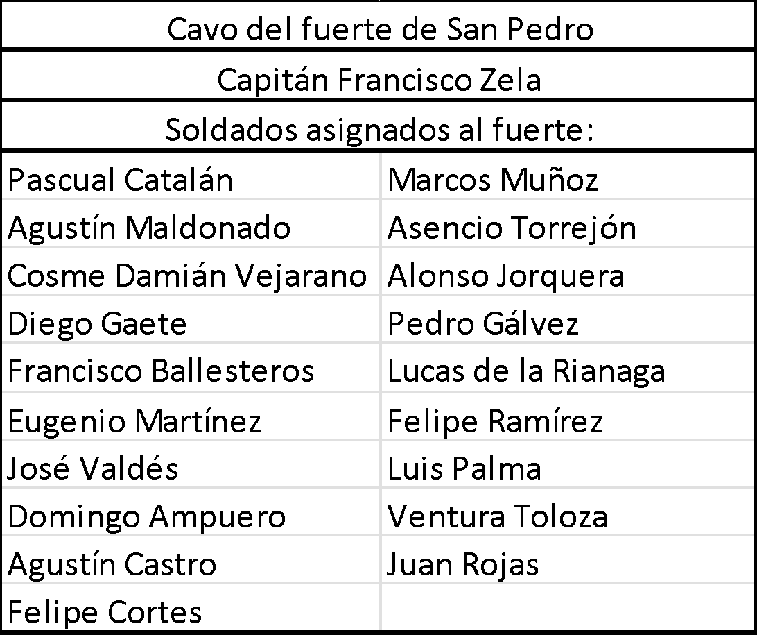 Ilustración 4 Guarnición del fuerte de San Pedro, año 1735