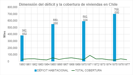 Gráfico 1. Déficit habitacional y cobertura de viviendas durante el último estadio del ciclo desarrollista chileno.