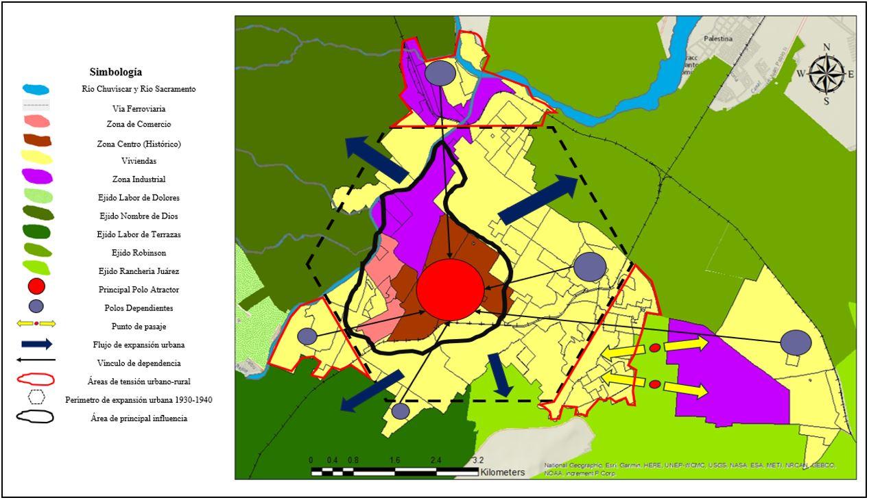 Figura 2. Corema de los cambios en la estructura urbana de la ciudad de Chihuahua (1930-1940)